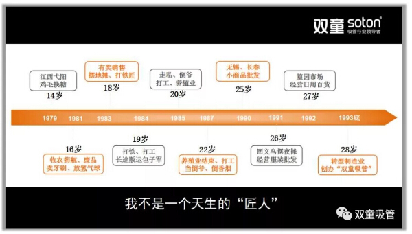 首先,樓總和學(xué)員們分享創(chuàng)新需要“堅持觀”,他一開始出生就在極端貧困中,初中輟學(xué),從14歲跟隨父親去江西“雞毛換糖”,在“雞毛換糖”的過程當(dāng)中勇于創(chuàng)新,持續(xù)折騰。在1979-1994年期間做了二十多個行當(dāng),打工、創(chuàng)業(yè),還養(yǎng)過魚,經(jīng)過多次失敗后選擇沉下心來把一根吸管做精、做細(xì)、做強(qiáng)!