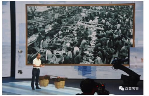 在節(jié)目現(xiàn)場(chǎng),“雙童”樓仲平也帶來(lái)了許多精彩的照片。其中,開(kāi)場(chǎng)照片便是義烏這座城市的對(duì)比照片。通過(guò)挑貨郎與義烏小商品城開(kāi)展全球電商的照片對(duì)比,樓仲平講述了義烏如何從貧瘠落后的小縣城發(fā)展為全球最大的小商品集散中心的故事……