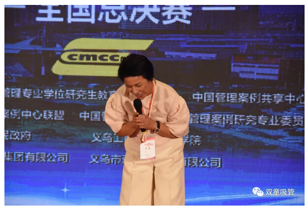 而當(dāng)主持人請俞董上臺發(fā)言時(shí),俞董激動(dòng)地現(xiàn)場鞠了三個(gè)躬,由衷感謝了義烏市委市政府、組織方、評委老師和參賽學(xué)生。她感慨道,每支隊(duì)伍的水平都非常高,讓作為評委的她十分難以抉擇!她實(shí)在想象不到這場比賽可以做到如此的精彩絕倫,能夠?qū)崒?shí)在在為企業(yè)提供有效的戰(zhàn)略指導(dǎo)!