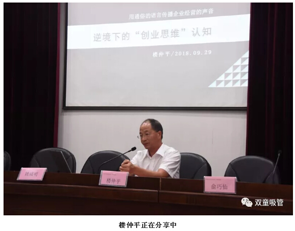 啟動儀式后,“雙童”樓仲平作為創(chuàng)業(yè)導(dǎo)師受邀上臺,和三四十位創(chuàng)二代和領(lǐng)軍型企業(yè)主們分享了“開班第一課”——《逆境下的創(chuàng)業(yè)思維認(rèn)知》!