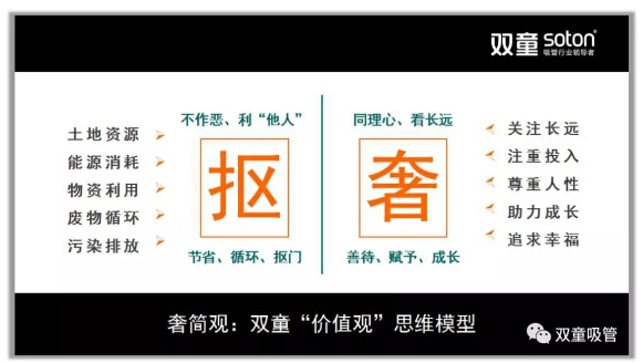 首先,樓仲平分享道:了解“雙童”的人都知道,“雙童”給員工提供的都是五星級硬件設(shè)施,但我卻常常告誡前來參觀的團隊們:千萬不要被“雙童”的表象所蒙騙了,一定要透過表象理解背后的深層邏輯!