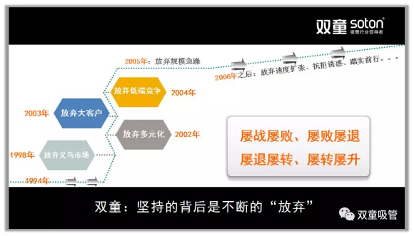 他坦言:許多人認(rèn)為“雙童”做的不錯,十分好奇二十多年前我們是如何制定戰(zhàn)略的。其實在發(fā)展的早期并沒有所謂的戰(zhàn)略,我們只不過是在求取生存的過程當(dāng)中不斷糾錯,不斷堅持,不斷樹立新目標(biāo),從而一步步得到提升和成長。
