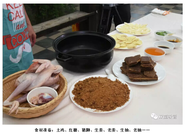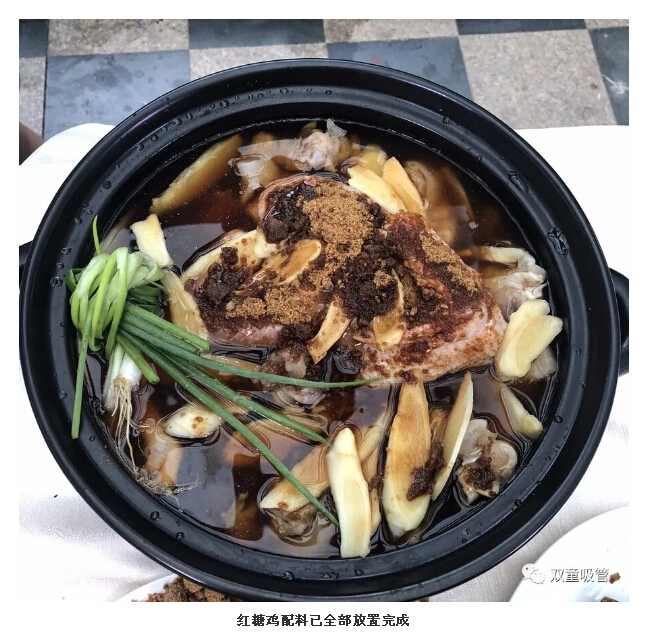 這道菜做起來可不簡單哦!除了有雞、紅糖、豬腳等主料外,還需加入七種調(diào)料,經(jīng)過12道工序后,用土鍋柴火燒制,并用稻草灰蓋鍋密封才能烹飪出更好的味道。 經(jīng)過大半天的燒制,“義烏紅糖雞”大功告成,色香味俱全?。≒S:嫩雞至少要燉1個小時,老母雞至少要燉2—3個小時)