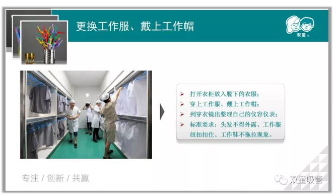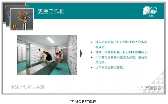 聽到這里,很多新員工也理解了吸管衛(wèi)生保障的重要性。接下來,就讓我們跟著毛講師的課程,再次重溫一下出入車間的防護(hù)措施吧: