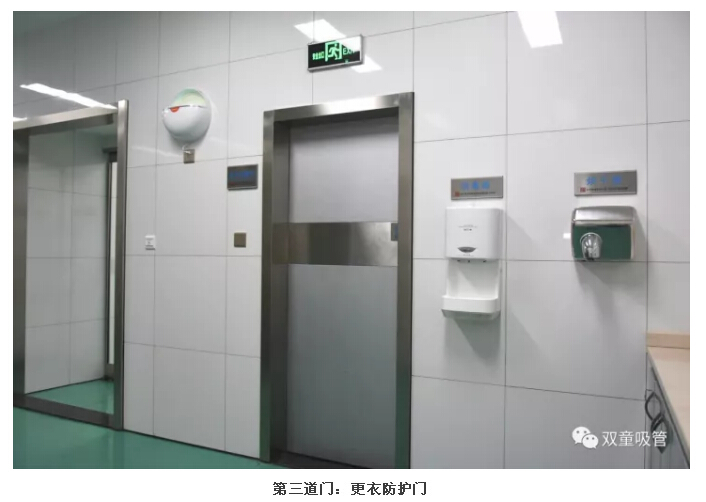 3.經(jīng)過了兩道防護(hù)門后,員工們更衣后通過更衣防護(hù)門進(jìn)入洗手消毒區(qū)域。