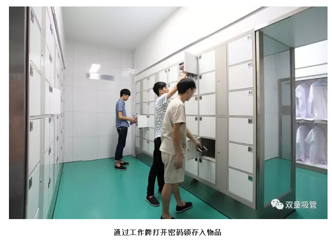 2、員工來到第一更衣區(qū),將自己的私人衣物儲(chǔ)存在柜子中。