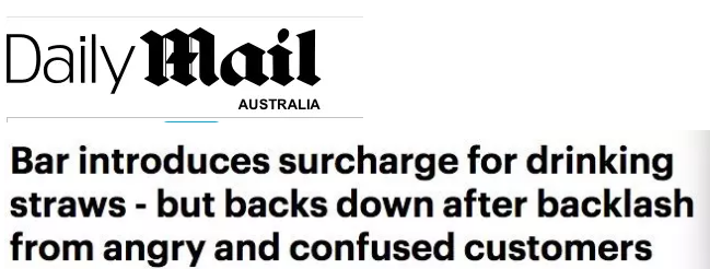 根據(jù)《每日郵報(bào)》報(bào)道,墨爾本一家酒吧積極響應(yīng)禁塑令,對(duì)要求使用塑料吸管的客人收取50分澳元的費(fèi)用,卻引起了客人的憤怒和不解……