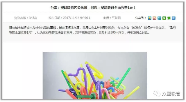 而臺(tái)灣媒體也報(bào)道,有民眾在“國發(fā)會(huì)”提點(diǎn)子平臺(tái)提議,“塑料吸管全面收費(fèi)1元”,因?yàn)檫@些吸管無法回收利用,對(duì)環(huán)境造成污染,這一點(diǎn)子引發(fā)民眾熱烈討論……