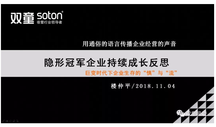 3、少找資本:我們想的很清楚,“一根吸管”在資本市場上沒有太多可炒作空間,尤其是中國現(xiàn)有的資本市場基本上都是政策資本和概念資本。作為一個制造業(yè)企業(yè)來講,要懂得自身的長處和短處。所以,“雙童”這些年一直堅持不上市。但是,“雙童”不上市并不意味著企業(yè)是封閉的,我們也正通過股份化改革等方式進行企業(yè)所有制改革,讓更多核心團隊成員擁有股份,從而達到組織凝聚和開放!