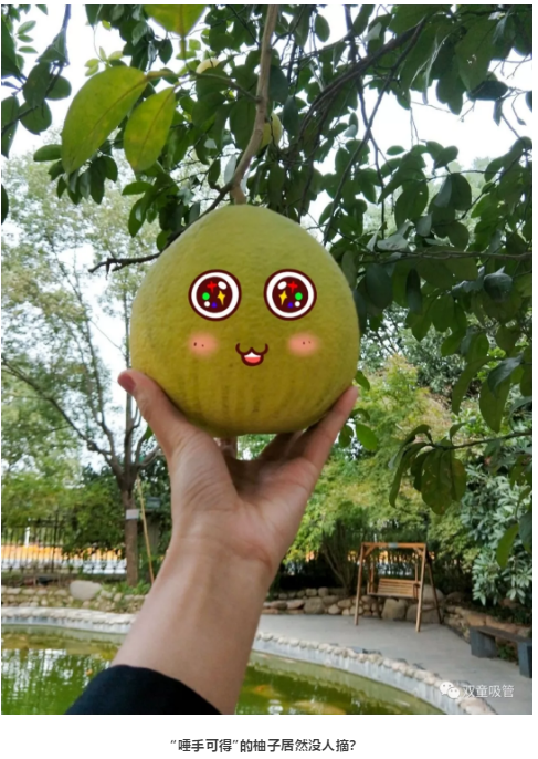 吸管妞還發(fā)現(xiàn),有幾個柚子長得非常的低,真的可以用“唾手可得”來形容,可是……竟然沒有吃貨來摘?這是怎么回事呢?