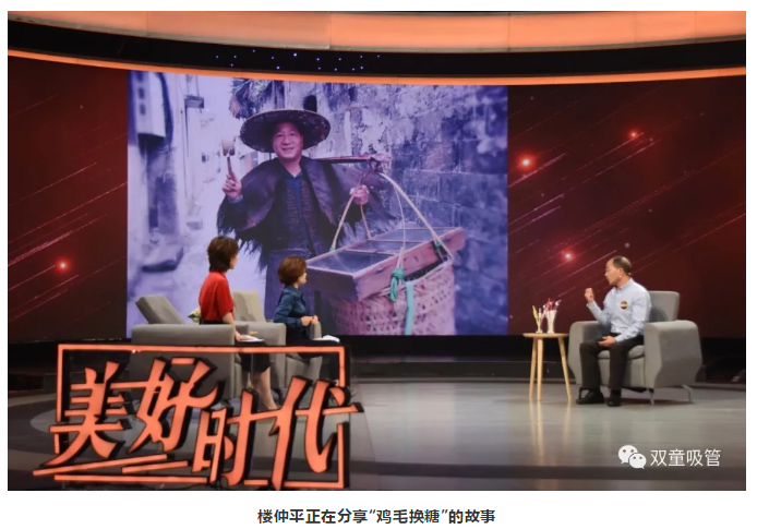 在節(jié)目錄制過程中,主持人趙丹軍好奇地問了“雙童”樓仲平一個問題:“你是幾歲開始挑貨郎擔的?”當?shù)弥獦侵倨?/span>14歲就開始“雞毛換糖”,并且每天要挑大約300多斤的雞毛時,大家都驚訝極了!