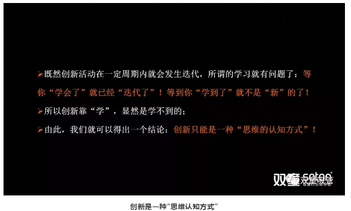 最后,“創(chuàng)新”是有“時間軸”概念的,昨天創(chuàng)新的東西,今天未必還“新”,所以創(chuàng)新一定是要對“舊有事物”的深度理解,是一種“思維方式”。