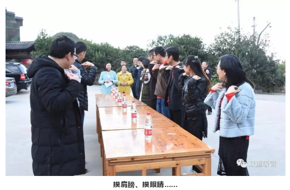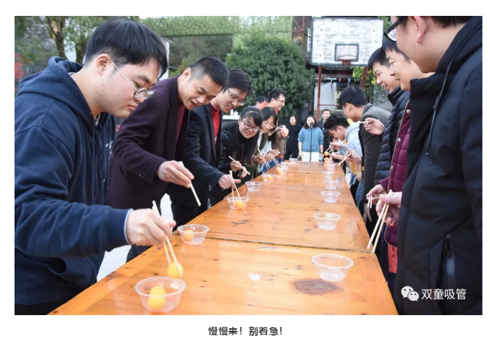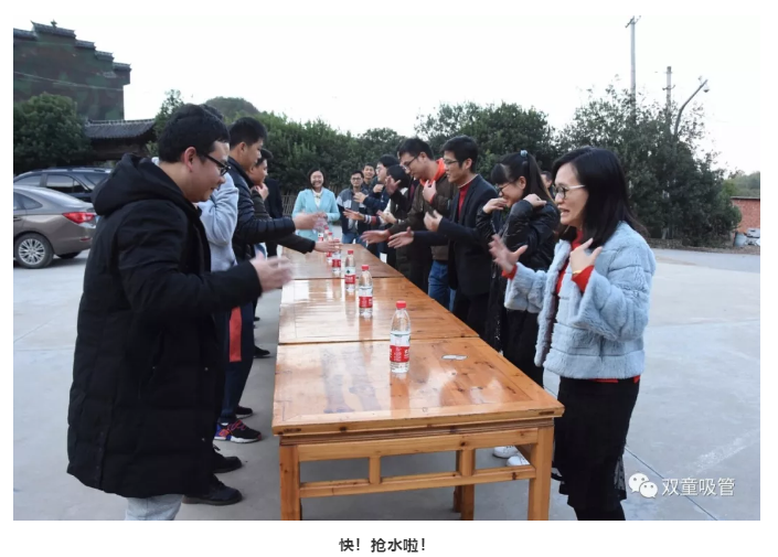 咦!這是發(fā)生了什么?原來,這是“雙童”人在一起在做團(tuán)建熱身活動——搶礦泉水呢!