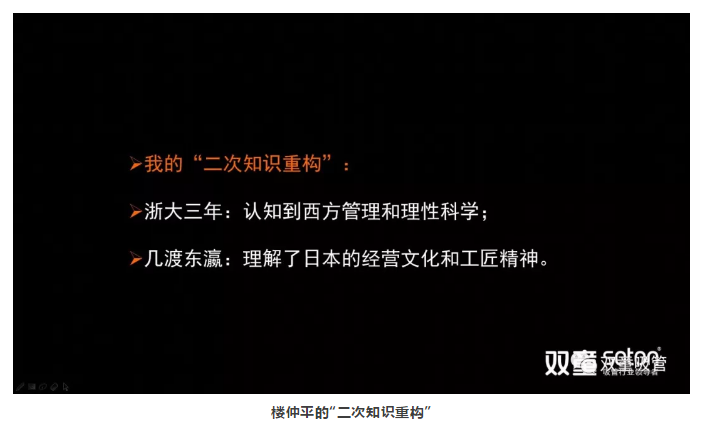 于是,他選擇到浙大學(xué)習(xí)進(jìn)修五年,沉下心來,拿起書本,重新開始學(xué)習(xí),并在這期間積累了不少管理理念和商業(yè)知識,努力向知識界和學(xué)術(shù)界靠攏!