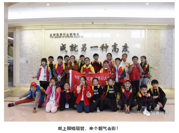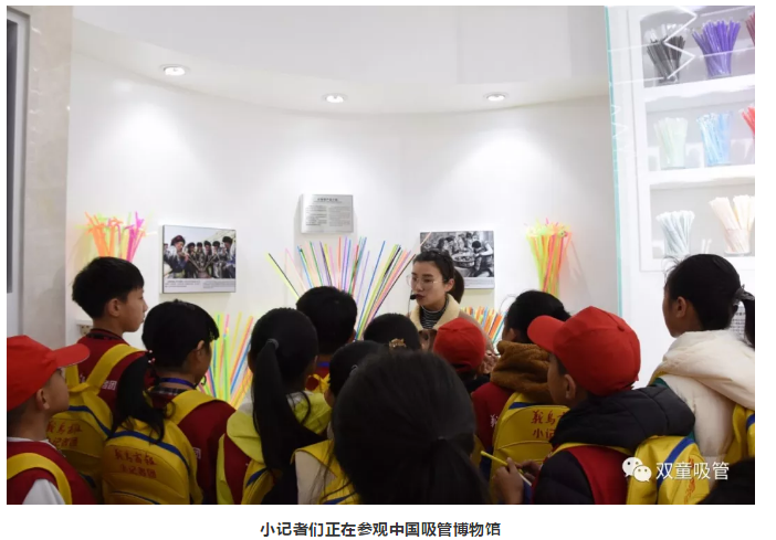 “小小的吸管背后,也有大大的故事”“一根小吸管,藏著大學(xué)問”“一件小商品,可創(chuàng)造無限的奇跡”……參觀完以后,小記者們紛紛用一句話來總結(jié)這次參觀的體會。最后,講解員姐姐還送了我們每人一根眼鏡吸管,大家興奮地當(dāng)場戴在頭上,拿起水杯,用眼鏡吸管來喝水,看著水從眼睛前緩緩流過,再流到嘴里,那種感覺別提有多爽了!