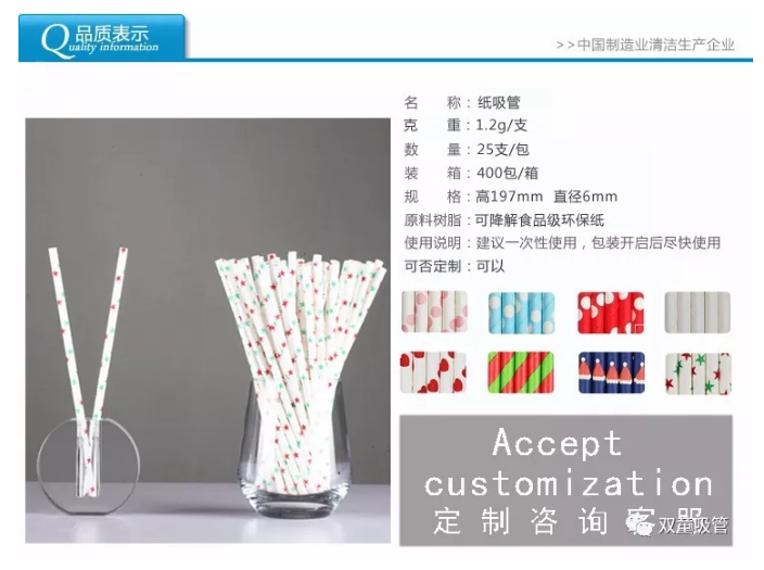 相對(duì)于塑料吸管,紙質(zhì)吸管以食品接觸類原紙為主要材料,并能用大豆基油墨印刷各類花色,在顏色鮮艷飽滿的同時(shí),確保安全無(wú)毒無(wú)異味,在回收廢棄后三到四個(gè)月內(nèi)可完全降解,符合歐美國(guó)家對(duì)食品安全包裝的衛(wèi)生要求,可用于生日派對(duì)、餐飲連鎖、家庭消費(fèi)、兒童DIY用具等各類場(chǎng)所!