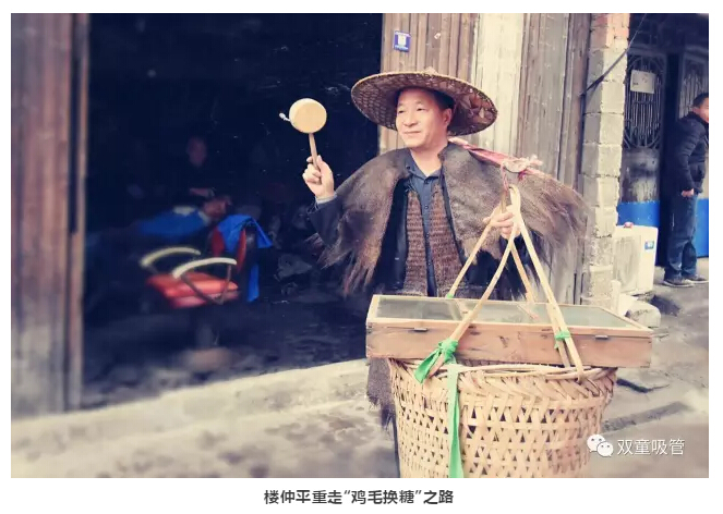 在我很小的時(shí)候,我爸爸就已經(jīng)出去“雞毛換糖”了,后來,兩個(gè)哥哥長(zhǎng)大了也陸續(xù)跟著我的爸爸去“雞毛換糖”。