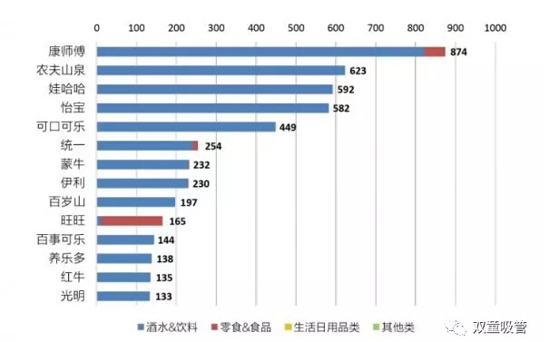而這些品牌我們就非常熟悉了,康師傅、農(nóng)夫山泉、娃哈哈、怡寶、可口可樂(lè)等都“榜上有名”!