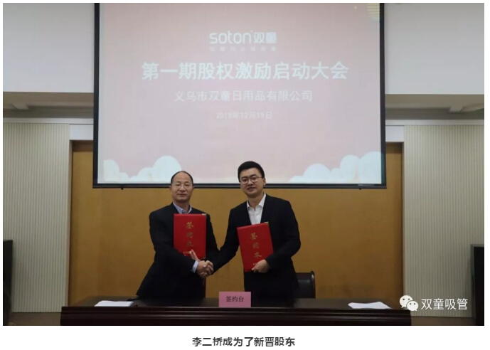而在今年的12月19日,在“雙童”第一期股權(quán)激勵啟動大會上,“雙童”首批12位核心員工正式簽約成為“雙童”的經(jīng)營伙伴,我們以股份合伙、業(yè)務(wù)合伙等“合伙激勵”的 方式讓優(yōu)秀人才變?yōu)楹匣锶?,讓員工和組織的目標長遠契合、共同生長、共享價值創(chuàng)造的有效延伸!