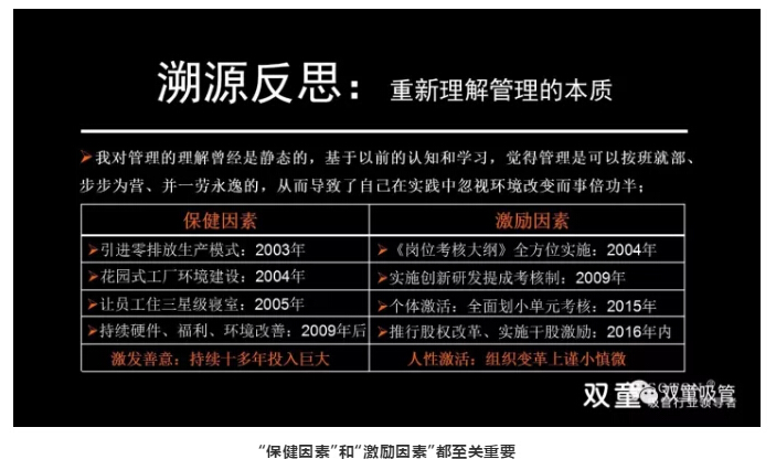 “雙童”樓仲平也曾在學習會上談到,員工與組織的關(guān)系就是一種彼此交換、彼此協(xié)作、彼此默契、彼此期望的雇傭關(guān)系,所以本質(zhì)上就無法像對待“家人”一樣對待員工,否則就會出現(xiàn)雙方彼此期待的背離,從而給雙方帶來傷害。