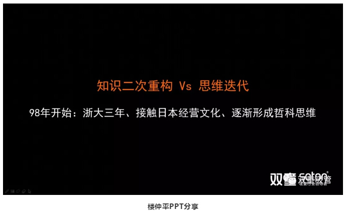 例如:近些年來,樓仲平努力向知識(shí)界和學(xué)術(shù)界靠攏,從而獲得經(jīng)驗(yàn)之外的知識(shí),看到感官之外的原理和邏輯。近兩年,樓仲平又加入了混沌大學(xué)開啟“第三次知識(shí)重構(gòu)”,持續(xù)學(xué)習(xí),重新認(rèn)知,不斷迭代。