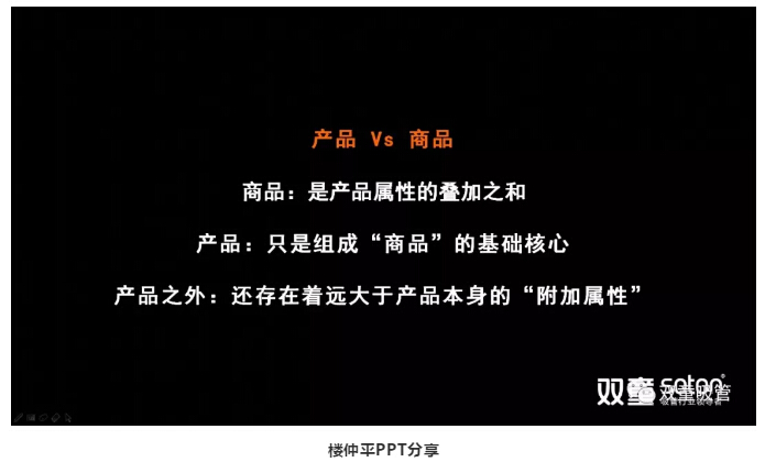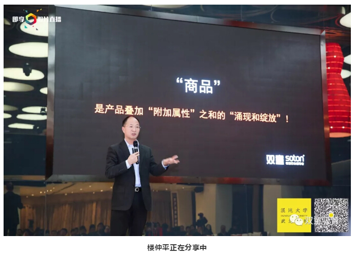 綜合以上來說,實(shí)際上樓仲平此次的課程分享也是屬于商品屬性中的“創(chuàng)始人IP”,通過他的傳播,獲得了在座觀眾的認(rèn)同,從而形成口碑傳播,對(duì)市場(chǎng)、客戶和渠道產(chǎn)生輻射影響!