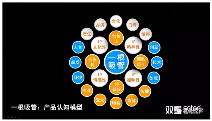 在這個(gè)模型中,產(chǎn)品本身(一根吸管)只是組成“商品”的基礎(chǔ)核心,在產(chǎn)品本身內(nèi)核不發(fā)生改變的情況下,產(chǎn)品之外的文化性、精神性、趣味性、情感性等屬性不斷地外延,通過“創(chuàng)始人”、“團(tuán)隊(duì)員工”、“價(jià)值觀”、“超鏈接”等又形成了產(chǎn)品的種種不同屬性。