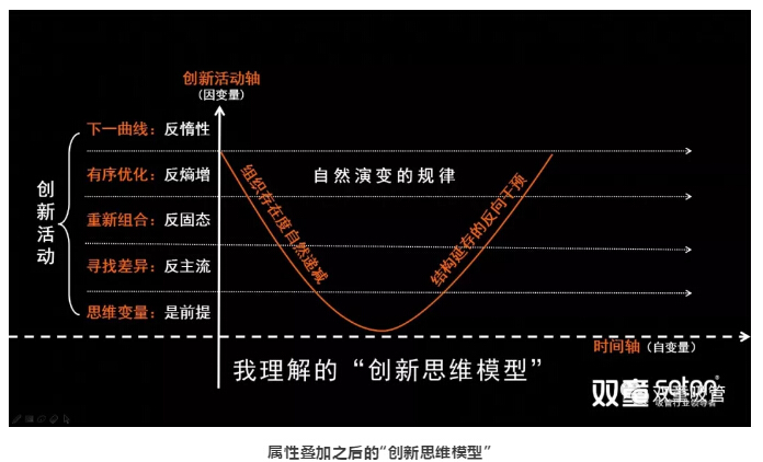 在這個(gè)模型里面,創(chuàng)新活動(dòng)作為創(chuàng)新思維模型的疊加屬性,越往上走,說明企業(yè)的創(chuàng)新深度越深……