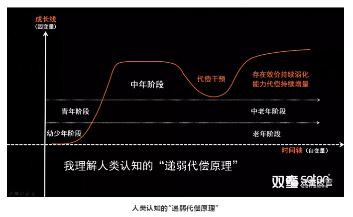 在這個(gè)過程中,如果人類想要改變這一自然的“墮變規(guī)律”,就必然需要通過“代償干預(yù)”,對(duì)自身進(jìn)行不斷地調(diào)整和干預(yù),從而讓認(rèn)知能力從“下墮”走向“上揚(yáng)”,讓能力代償持續(xù)增量!