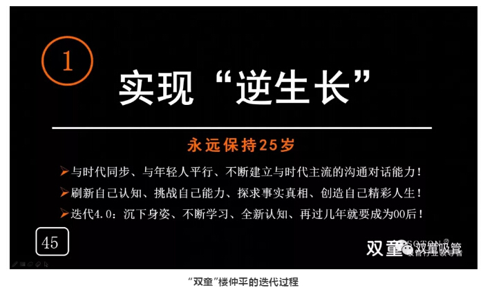 正是對(duì)自我認(rèn)知的不斷代償干預(yù),樓仲平才能永遠(yuǎn)保持“25歲”,不斷與年輕人發(fā)生鏈接,迎合這個(gè)高速變化的時(shí)代!