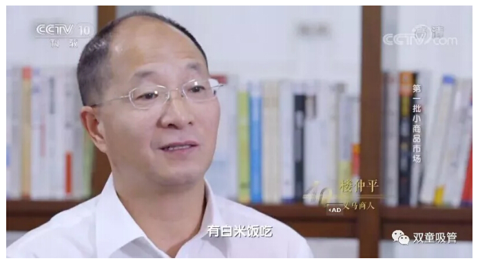 2018年12月19日晚,央視CCTV—10 播出了大型紀(jì)錄片《四十年四十個(gè)第一》第十五集《第一批小商品市場》!其中,講述了以“雙童”樓仲平為代表的幾位義烏商人的發(fā)展故事,講述了義烏在針頭線腦中發(fā)家致富,從貧瘠小縣城發(fā)展為全球小商品市場的蝶變故事!