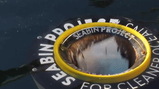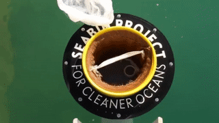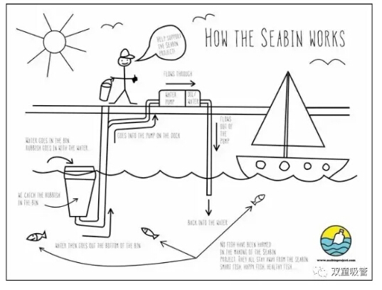 海洋里的垃圾就會(huì)被吸進(jìn)桶里的纖維袋內(nèi)。