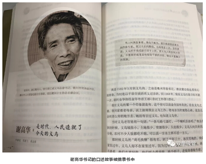 此書記錄了浙江大地最具代表性的40位浙江改革開(kāi)放見(jiàn)證者,以口述歷史的方式記錄當(dāng)事人所見(jiàn)、所聞、所思與所為!其中,“雙童”樓仲平與原義烏縣縣委書記謝高華是代表義烏改革開(kāi)放40年發(fā)展的標(biāo)志性人物!