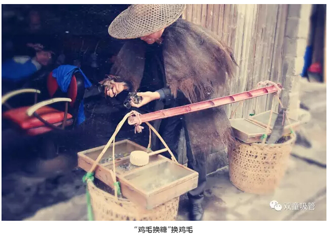 貨郎擔(dān)在“雞毛換糖”的過程中,