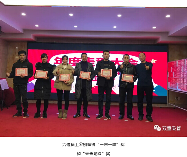 另外,我們還分別給六位員工頒發(fā)了特別的獎項:“一帶一路”獎和“天長地久”獎。