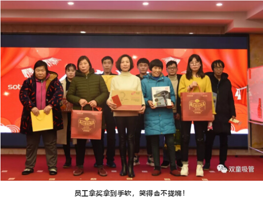 在一片歡聲笑語中,雙童吸管2018年度盛典也圓滿結(jié)束!2019年,將是“雙童”全力奔跑的一年!最后,吸管妞也要祝愿“雙童”一年更比一年好,祝福大家在新的一年工作順利,身體健康,“豬”事順利,新年快樂!