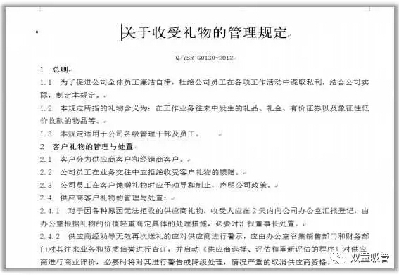 當(dāng)遇見(jiàn)供應(yīng)商送禮時(shí),業(yè)務(wù)員應(yīng)該拒收,對(duì)于無(wú)法拒收的供應(yīng)商禮物,受收人應(yīng)該在兩天內(nèi)向辦公室匯報(bào)登記。