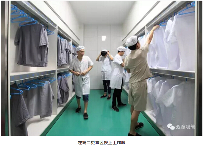 除了生產(chǎn)現(xiàn)場的工作環(huán)境之外,進入車間前的一系列衛(wèi)生防護標準也至關(guān)重要!在“雙童”,每位員工在進入車間前,都要按照規(guī)范進行消毒防護措施,過五道門六道關(guān)卡才能進入車間工作: