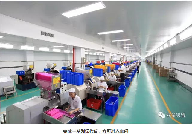 進入車間內(nèi)部,一列列整齊的機器、一箱箱五顏六色的吸管、一條條清晰分明的分界線,車間內(nèi)全部安裝了恒溫空調(diào),所有員工皆穿著潔白的工作服進行生產(chǎn)工作。