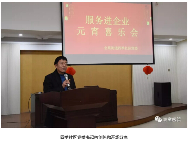 2月18日晚,“雙童”聯(lián)合北苑街道四季社區(qū)黨委,發(fā)揮"雙童同心圓"的黨建引領(lǐng)作用,共同開展了元宵喜樂會活動。此次活動除了“雙童”員工代表之外,還邀請了北苑兩新企業(yè)的支部書記、職工代表,大家聚在一起共度溫馨的元宵佳節(jié)!