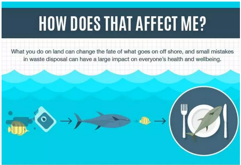 而最終,按照食物鏈循環(huán),就形成了人類生產(chǎn)和使用塑料和微塑料,再污染環(huán)境和海洋,海洋生物吃下微塑料,人類再吃含有微塑料的海洋生物,主要是魚類,于是微塑料返回于人體內(nèi)。
