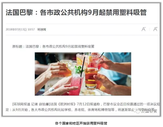 緊接著,越來越多的國(guó)家和機(jī)構(gòu)開始行動(dòng),如:法國(guó)、西班牙、新西蘭等國(guó)全面限塑,星巴克、麥當(dāng)勞、迪士尼等機(jī)構(gòu)也開始禁用塑料吸管……