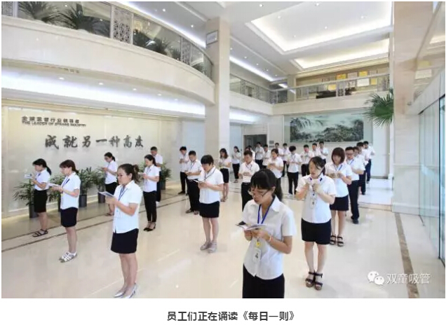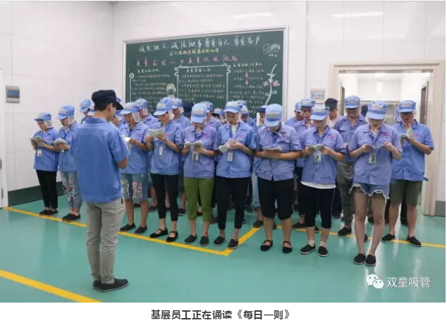 當(dāng)然,“雙童”的這些文化標(biāo)語(yǔ)除了在墻面展示之外,也被收錄到“雙童”企業(yè)文化叢書(shū)《每日一則》當(dāng)中,每天誦讀一篇《每日一則》成為“雙童”員工們的必修課,哪怕是在車(chē)間里工作的基層員工也是每天雷打不動(dòng)地要誦讀哦!