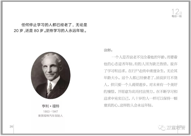 任何停止學(xué)習(xí)的人都已經(jīng)老了,無(wú)論是20歲,還是80歲。堅(jiān)持學(xué)習(xí)的人永遠(yuǎn)年輕。——亨利福特