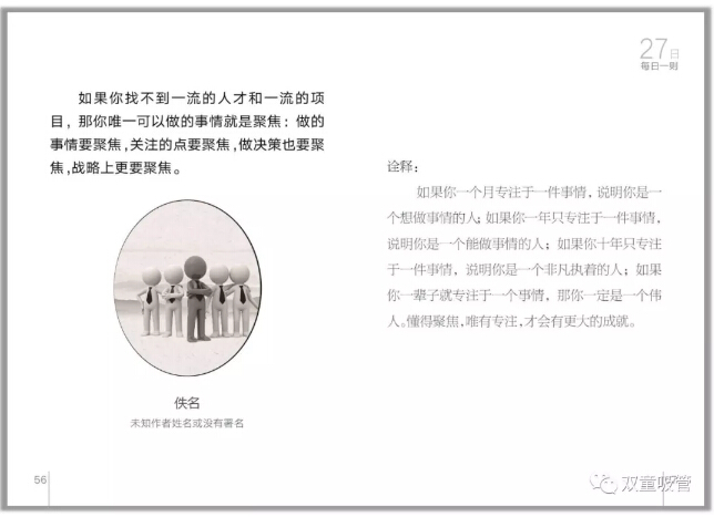 如果你找不到一流的人才和一流的項(xiàng)目,那你唯一可以做的事情就是聚焦:做的事情要聚焦,關(guān)注的點(diǎn)要聚焦,做決策也要聚焦,戰(zhàn)略上更要聚焦。——佚名