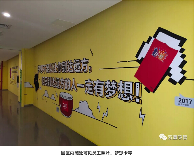 走進阿里巴巴西溪園區(qū),企業(yè)文化落地在各個場合,園區(qū)中的每一處都展現(xiàn)了阿里巴巴倡導(dǎo)“快樂工作,認真生活”的態(tài)度,文化墻讓來往商客充分感受到阿里巴巴開放、包容、自由而又不失嚴謹?shù)钠髽I(yè)文化。