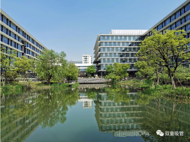 離開辦公區(qū),漫步在園區(qū)內(nèi),建筑、樹木倒影在水中,景色真是太美了!