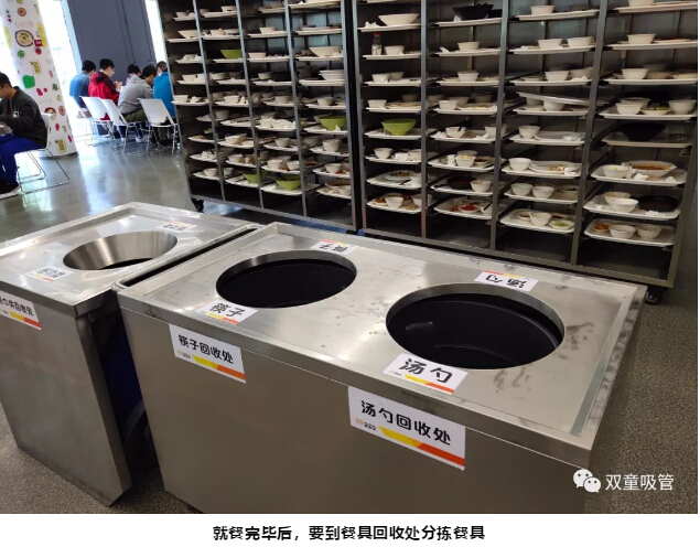 就餐結(jié)束后,我們跟著阿里員工來到餐具回收處,將紙巾、飲料瓶、筷子、湯勺等進行分揀,放入傳送帶中方可離開,不用洗碗的人生真是太幸福啦!