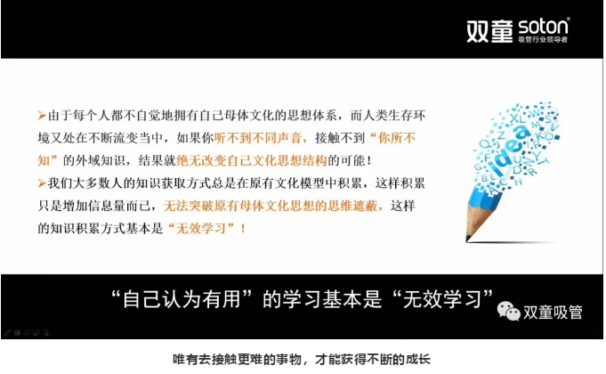 4月18日晚6:30,“雙童”第273期行政學(xué)習(xí)會在九樓閣舉辦!“雙童”樓仲平和員工們分享《真相往往在眼睛之外》課程,并引導(dǎo)員工們通過思考、互動、分享認(rèn)知:在眼界之外還存在一個宏大的天地,用“思想”看清這個世界的真相!