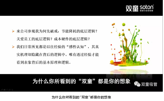 那么,到底應(yīng)該如何解決這個難題呢?樓仲平又以“雙童”案例來說明:“雙童”現(xiàn)在每天都會有參觀接待活動,但如果我有時間跟參觀團隊交流,我都會引導(dǎo)大家‘破戒’,引導(dǎo)大家要通過現(xiàn)象看本源,要了解‘雙童’為什么會這么做,企業(yè)這樣做的底層邏輯在哪里?一味照搬仿制是沒有意義的!